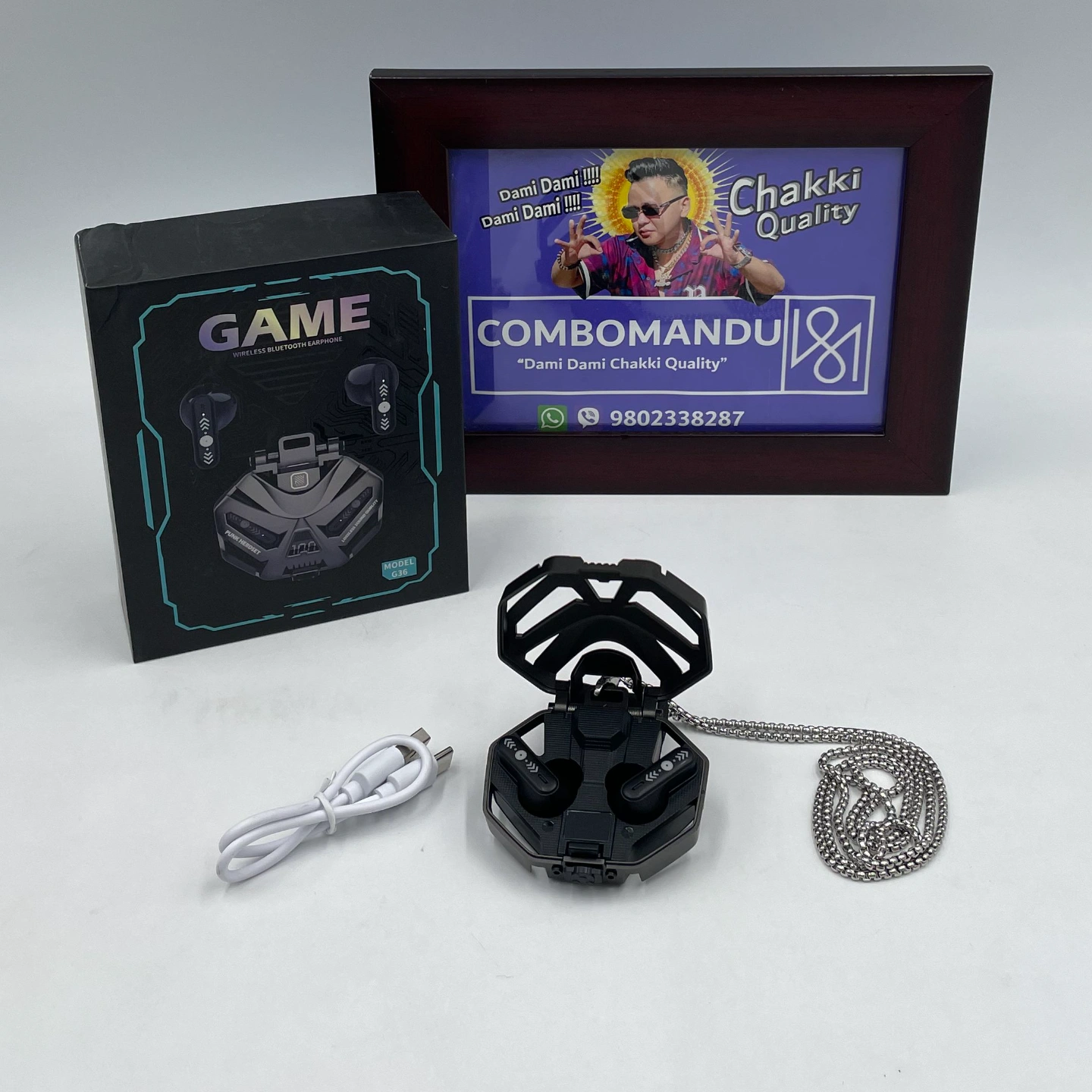 Comes with a chain for portability and a USB charging cable for convenience.