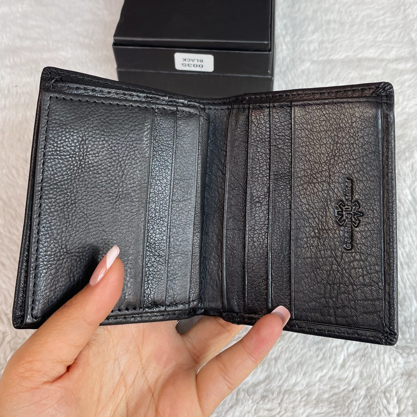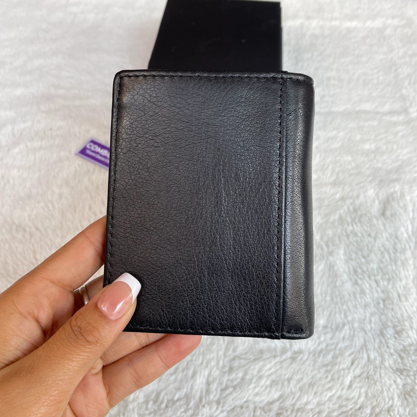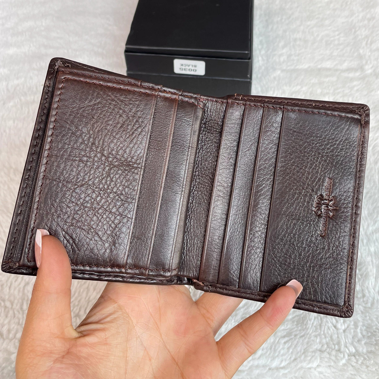 Multiple compartments for cards, cash, and coins.